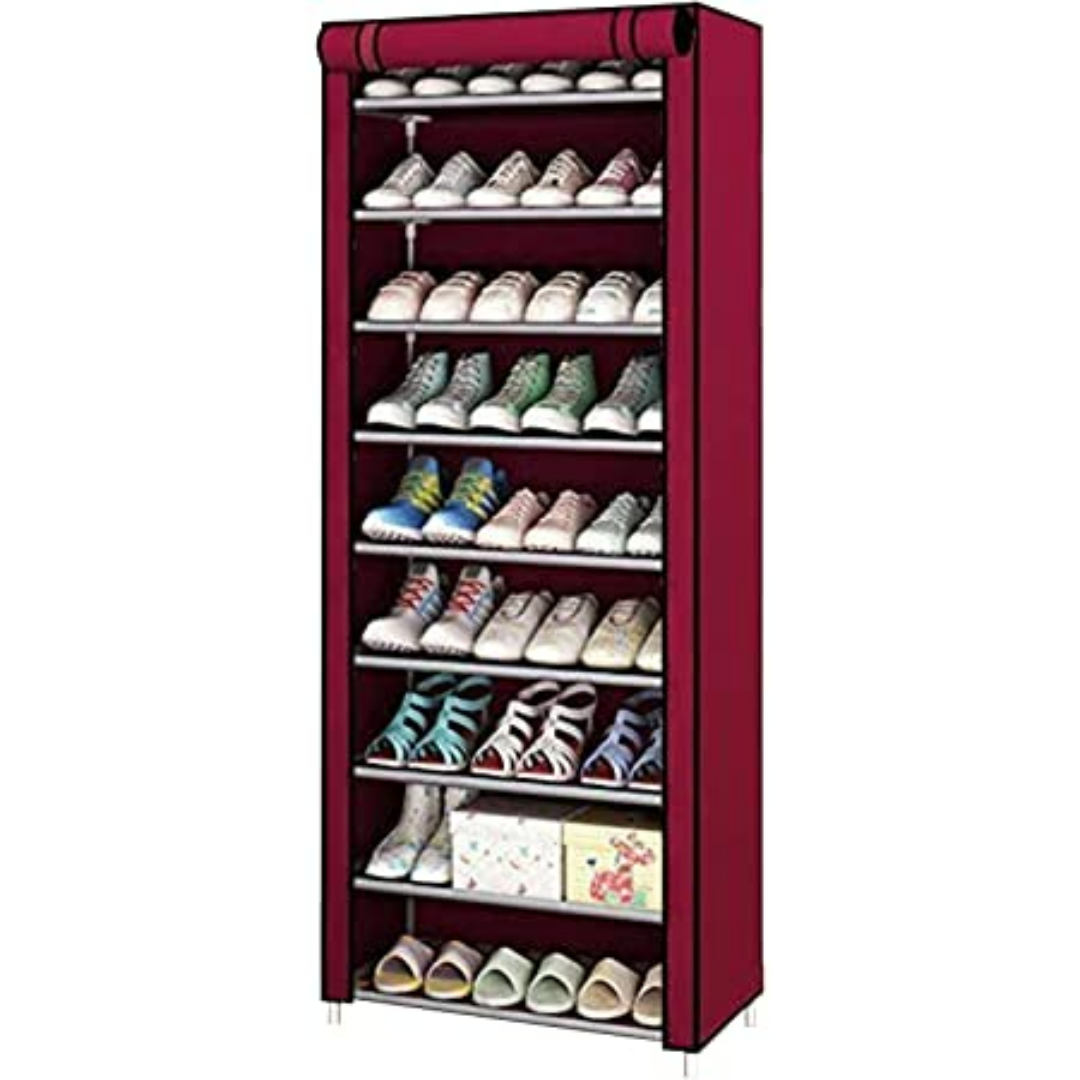 the 9 Layers shoe rack provide hugespace to contain your shoes. Constructed from selected non-woven fabric, high quality steel tube and PP plastic connectors, this shoe tower will offer you long term organization system
