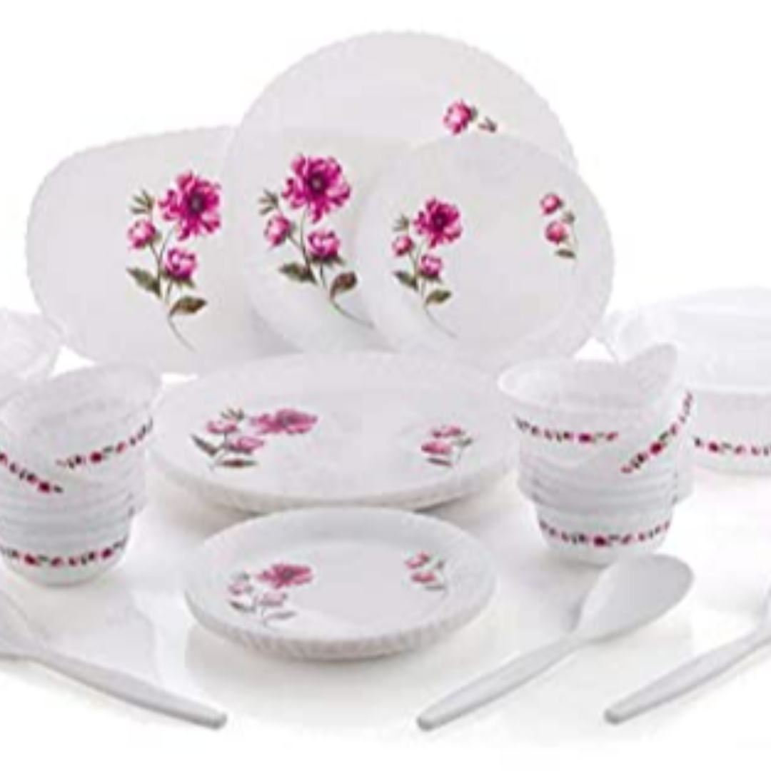 Included Components: 6 Full Plates, 6 Quarter Plates, 12 Veg Bowls, 2 Serving Bowls, 2 Serving Bowls Lids, 2 Serving Spoons, 1 Regular Spoon, 1 Serving Laddle
