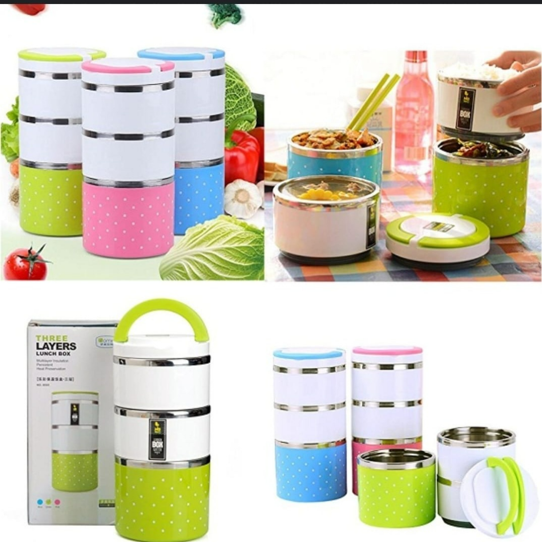 Stainless Steel And Heavy Fiber 3 Container Lunch Box With Multi Layer